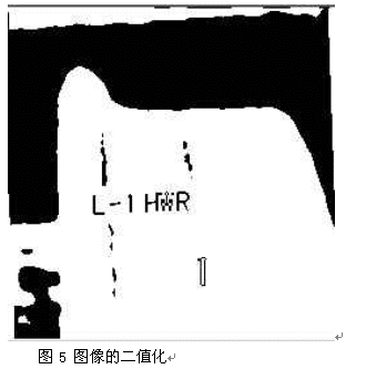 经过原始图像的不断处理,最终要求图像具有黑、白两种像素值。采用图像的二值化处理主要使图像画面内仅存在黑色(灰度值为0)、白色(灰度值为1)的二值图,在图面上不呈现有灰度变化,在图像处理中二值图起到重要作用,大大简化后面的图像处理,一般图像中显示物体与背景有明显区别,通过选择阀值t,可分离所需的图像和背景图像,以便对图像进行测量处理打下基础,方法如下:
