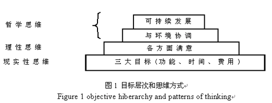 建设项目全寿命期目标体系要求项目的管理者(决策者)、其它项目参加者(承包商、政府机关、投资者、项目周边组织等)不仅要有现实性的思维,而且需要理性思维和更高层次的哲学思维,以对全社会、对历史负责的精神进行项目,既关注建设项目的现状,又注重建设项目未来发展的生命力,具有辩证唯物主义的发展观。