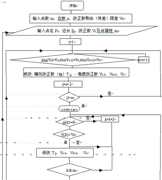 通常进行角度距离法归化改正时,人为判断和选取需改正的点位,凭借经验试探该点横向改正值。由于在串测的导线上,一点的横向改正会引起相临两点间夹角的变化,因此须反复试探调整各点改正值,才能满足调线和归化改正要求。此方法既无固定规律又不严密,效率又低,实践经验不足的测量工作者很难掌握。