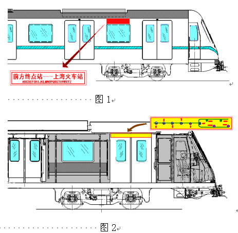 目前上海地铁一、二、三、五、六、八号线在车辆信息显示系统的设计上缺少实用性和操作性,对乘客来讲缺少在实时报站时的人性化。如:地铁车厢内的乘客信息显示系统和车厢外侧的列车信息显示系统。如果在每个车门的上方安装车站站名动态显示地图,实时显示与车厢广播同步的信息,以及在每节车厢外侧显示列车的终点站,良好的工业设计不仅能给广大的乘客带来非常大的帮助,而且能够提升上海地铁服务的形象。由于在设计以上地铁列车时,受科技发展的限制。现在上海地铁4号线在车辆信息显示系统的设计上满足了广大的乘客的需求,
