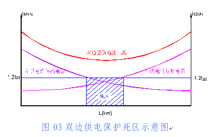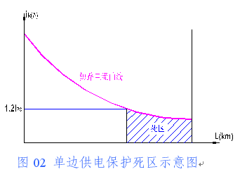 1.死区的形成 因供电方式的不同, 保护设置不同, 形成保护上的死区也不同, 单边供电死区发生在供电区段的末端附近; 大双边供电死区发生在供电区段的中点附近, 运行列车主保护不能断弧时死区发生在电动车辆的上,可以发生在列车运行区间的任何位置。