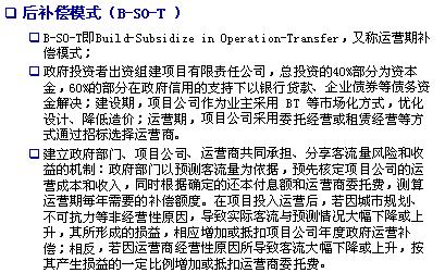 围绕如何建立营利模式,我最后提出了现在已经比较完整的“前补偿”、“后补偿”两种PPP模式。