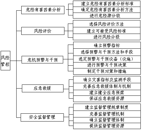 风险管理与控制是利用风险分析与评估等方法辨识系统中存在的不安全因素,或称为危险、有害因素等,对发现危险、有害因素进行定义、分类和说明,并采用危险预先分析、事故树等方法对其可能造成的影响或结果进行分析,定义出危险有害因素的等级,制定预防或控制措施并组织实施,不断跟踪监控其措施实施效果并进行效果评价,从而进一步循环,逐步实现对危险有害因素的控制与消除。