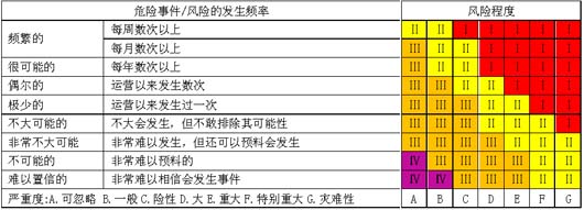 第五步:采用“频率—后果”矩阵,将危险事件/风险的发生频率和它的严重度结合起来对风险进行评价,确定风险类别。