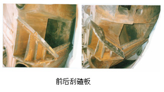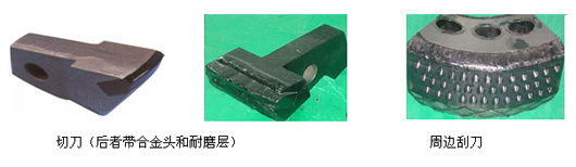 1.6.3 刮碴板的作用是将滚刀破碎的岩碴,及时排出,防止滚刀对岩碴的二次破碎,保护滚刀。前刮碴板主要铲装刀盘前方的落碴,铲装量大,磨损较快,后刮碴板主要铲装下护盾推进中从隧道底部堆积起来的碴石,铲装量小,磨损较小。
