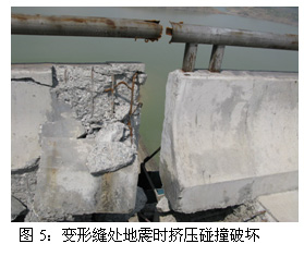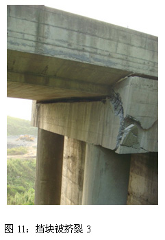 从图片中,可以看出虽然横桥向变位也很大,但桥墩帽梁的挡块起到了很好的防震作用,没有出现破坏性的桥塌情况。