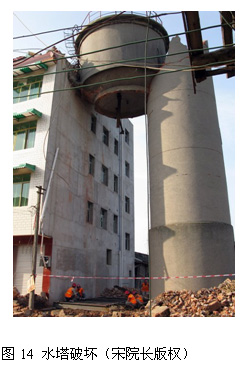 了独柱式桥梁车站。但从震区一水塔的破坏形态来看,如果整个结构的重心靠上,在地震时极易破坏。