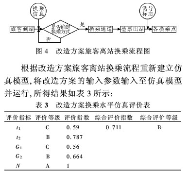 根据改造方案旅客离站换乘流程重新建立仿真模型,将改造方案的输入参数输入至仿真模型并运行,所得结果如表3所示:
