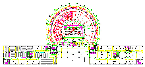 当中央控制中心的主体建筑为圆形时。中央控制室应该采用扇形布置方案。由于建筑结构与控制室内显示屏的弧形结构一致,使中央控制室的布局更加紧凑,建筑面积利用率高,有利于压缩调度大厅的建筑面积,降低工程造价。北京地铁的小营中央控制中心和广州地铁的三号线、七号线中央控制中心都采用圆形建筑,其调度大厅采用扇形布置方案。