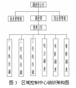 调度部设主任1名,负责管理下属的调度班组。下面是控制3条线的区域控制中心组织架构图。