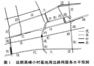 结合园区站新增交通量,利用EMME/2交通规划模型,预测得到早高峰道路交通量,见图1。