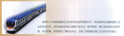 深圳地铁5号线信息化由安全监测与风险管理系统、安全监控子系统和工程项目管理子系统组成。