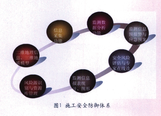 ★安全风险评估与专家会商有专家风险评估功能、专家会商功能、风险评估信息发布功能、GIS信息发布和风图1施工安全防御体系险评估交流平台功能。进行风险评估的专家在业内具有丰富的经验,当出现一些预警的情况,比较高层次的专家会进行会商,做出重大的判断。