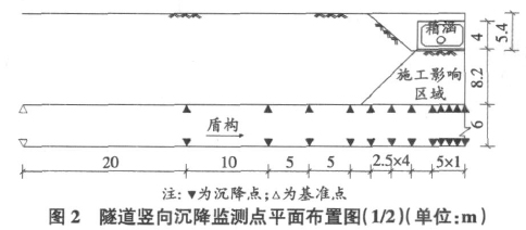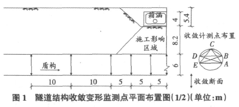 采用SL-2收敛计和精密水准仪分别对隧道结构的收敛变形和隧道沉降进行了监测点的布置,如图1,图2所示。监测报警值如表1所示。
