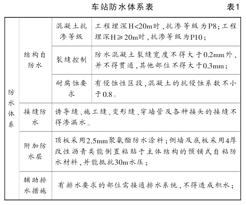 三、车站防水体系(见表1)