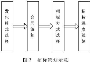 招标策划主要解决每个标段采用什么样的委托方式和承包方式,采用什么样的合同种类、形式及条件,采用什么样的招标方式,各标段招标的开始完成时间等问题。因此,招标策划主要包括发包模式的选择、合同体系的策划、招标方式选择、招标进度策划等内容。通过招标,选择合适的承包商,将权利责任合理地分配给相关各方,见图 3。