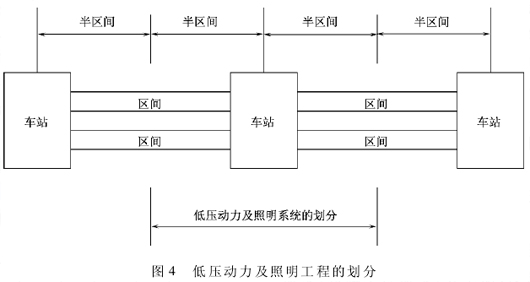 在工程内容划分时,应遵循工程内容的客观性要求,保持单个标段内工程内容的完整性,否则会人为地加大管理难度。如低压动力及照明系统,由于车站给相邻两个半区间配电,为了工程实施、验收等方便,应按图 4 所示进行工程内容的划分。