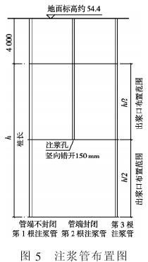 注浆管竖向安装时,第 1 根注浆管端不封闭,其他2 根管端封闭,并且第 2 根注浆管比第 1、3 根管短一半(见图 5)。