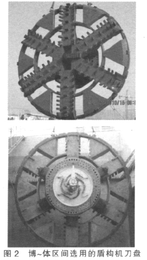 本工程盾构区间隧道施工需长距离穿越砂层,刀盘易磨损, 综合各种因素采用 Φ6250 mm 海瑞克土压平衡型盾构机,并采用开孔率较大的辐条式刀盘,共有6 根辐臂 ,开口均匀,刀盘可以双向旋转。 刀盘形式见图 2。