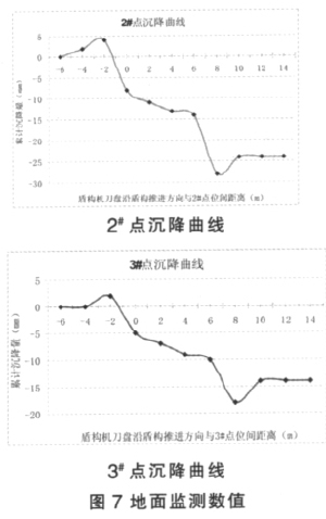 在开挖面即将到达之前发生的沉降,表现为地表下沉或隆起,主要是由于盾构对开挖面土层压力过大或过小致使开挖面失去平衡而引起的,所以在实际中一定要让保持在合理的区域内。