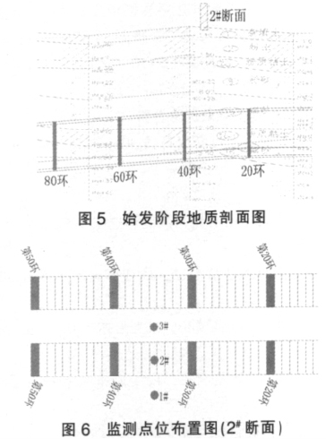 本区间地面监测点断面每隔30 m 布设一组 ,每组共设10 个监测点,点间距为 5 m。监测频率: