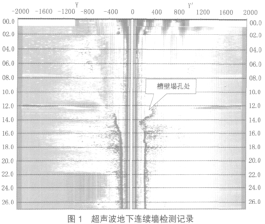 在苏州轨道交通4号线连续墙施工的成槽过程中,连续出现塌孔现象,对工程施工安全、施工质量及施工成本带来不利影响。为此,对地下连续墙成槽用超声波进行了检测(见图 1)。