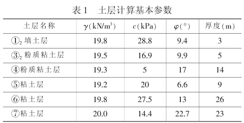 结合本课题中地层分布情况,并在参考相关土层试验参数的基础上给出计算参数如表1 所示。