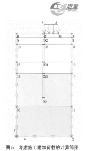 一般在施工过程中都有成槽机在槽孔侧部地面上施工,因此需要模拟该附加荷载的作用。附加荷载计算长度取为 15m,荷载值考虑到实际施工机具的重量,取20kN/m2(见图 5)。