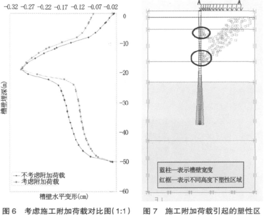 2)由于现场施工机具较多,槽顶作用有较大的施工附加荷载,分析该因素对槽壁变形和产生破坏的影响;