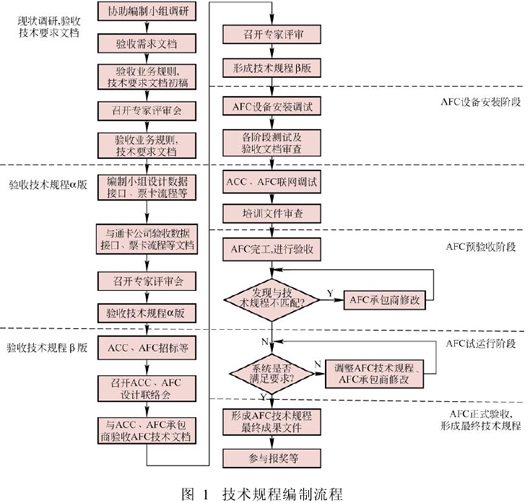 南京地铁AFC系统技术规程编制流程体现了建设和运营管理方面的需求,可满足线网AFC系统设备的设计、开发、生产制造以及招标的需要,流程如下页图1所示。