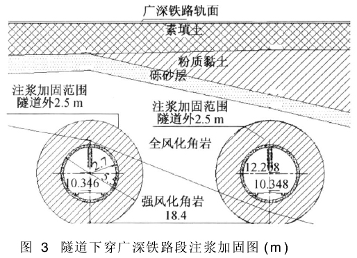 图3为区间隧道下穿广深铁路段注浆加固图。