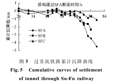 3) 施工中通过严格控制土仓压力、加强管片壁厚二次注浆、通过曲线段停止使用超挖刀、采用小推力大扭矩推进、加强施工监测和加入泡沫剂改善碴土和易性等措施,实现了顺利通过高速公路和苏抚铁路,地面沉降值控制在 10mm 以内。