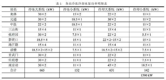 3.1.1 各站冷冻冷却水泵功率明细见表 1。