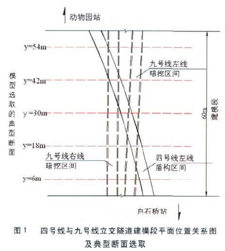 随着城市轨道交通(地铁)网络的不断完善,将出现众多的新建隧道与既有隧道之间相互平行、相互重叠以及交叉穿越等等情况。以北京地铁为例,根据初步统计资料,穿越节点将会多达119处。新建地铁隧道的施工与既有地铁结构之间是相互影响的,既有地铁结构的存在影响到新建地铁的施工和安全;而新建地铁施工则又必然对已建地铁的结构安全产生重大的不利影响。因此,在施工中不仅要保证新建工程自身的施工安全,同时还要保证已建地铁工程的安全(如果既有线已经开始投入运营使用则还需要同时考虑列车运营过程的安全)。目前,关于平行隧道以及垂直交叉的下穿施工的施工力学机理的研究己较多,并取得了很多成果,在国内己经有不少成功的工程实例。但是,“小角度、近间距、长距离”空间立交隧道合理的施工顺序研究,还非常少见。