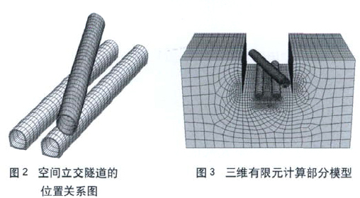 由于该空间立体交叉段范围内新建盾构隧道与既有暗挖隧道之间的平面交角很小,隧道之间的净间距也非常小,因此无论采用何种施工方案,新建的盾构隧道必然会对既有暗挖隧道的结构产生不利影响。为了合理确定空间立交隧道的施工方案,需对该空间立交隧道在不同施工方案的修建过程中所引起的相互影响规律进行数值计算。