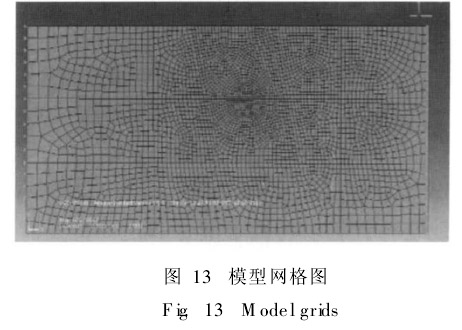 模型高度取35m,宽度取70m,边界条件为左右两侧约束水平位移,底边约束竖向位移,顶部无约束,围岩采用实体单元,隧道衬砌采用梁单元,模型网格图见图13,模拟开挖方式为上下台阶法,对开挖采用应力释放法,开挖后释放40%,之后施作衬砌,释放100%。