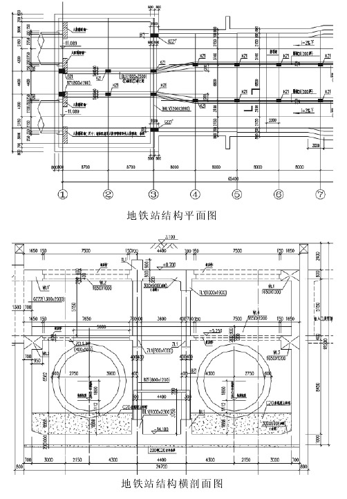 1号线的相关工程概况地铁站为地下双层岛式车站。结构顶板覆土埋深3.0m,车站结构底板埋深约16m,座落在粉土和粉质粘土层,地下水位埋深约0.5m。车站外包总长度573.2m(净长570m),站本体外包总宽20.3m(净宽17.3m),外扩通道范围外包总宽为33.2m(含外扩通道)。