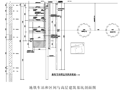 高层建筑基坑与轨道交通1号线之间的剖面关系