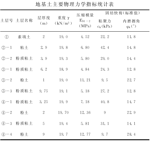 根据上述计算范围内的土体,结合地质资料,选取的土层参数如下表:
