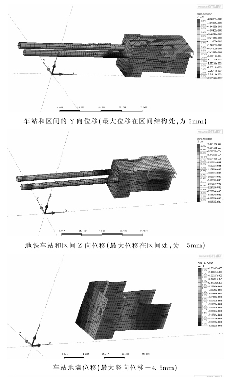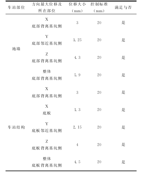 结构整体位移(主要为坑底位移、地面位移和围护体系的位移、地铁车站和区间结构的位移)