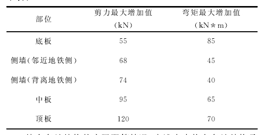 同时,基坑开挖导致的车站结构内力增加均较小,具体见下表:
