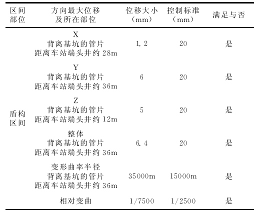 参照上海市关于地铁保护的相关标准,车站的变形可以满足要求。具体的参数如下表: