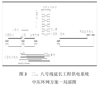 广州市轨道交通二、八号线延长工程在八号线沙园站附近新建了沙园主变电站(图 1),沙园主变电站在向八号线西段供电的同时,也向二号线南延段供电。既有二号线供电系统中压环网在江南西站和晓港站之间拆分,拆分后,新二号线环网从江南西站向南经昌岗站延伸至广州南站,全线由瑶台和沙园主变电站供电;而八号线环网则由晓港站向西经昌岗站延伸至凤凰新村,全线由河南主变电站和沙园主变电站供电。
