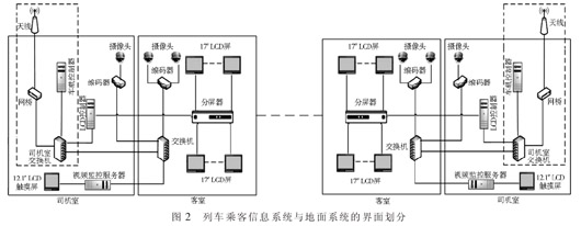 方案 3 是目前一种新的分工界面, 此方案将地面乘客信息系统和列车乘客信息系统在一起招标, 减少车载视频监控图像上传到地面控制中心的接口协调问题,但在实际的运用案例中,也暴露出了其不足: