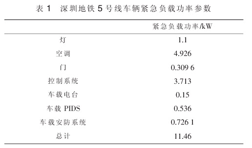 深圳地铁 5 号线车辆紧急负载功率参数如表 1 所示。