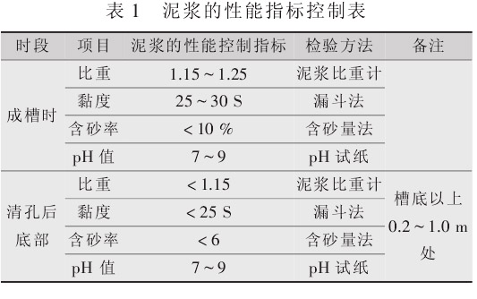 ②沟槽内的泥浆要按挖槽过程中和挖槽完成后的泥浆静止时间长短分别进行质量控制,否则形成的泥皮薄弱且抗渗性能差[1];