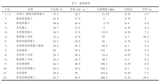 本场地地势平坦,地面标高一般为2. 93 ~3. 58m,属滨海平原地貌类型。工程范围内土层主要有黏土、粉砂等,建址范围内地质情况见表 1。