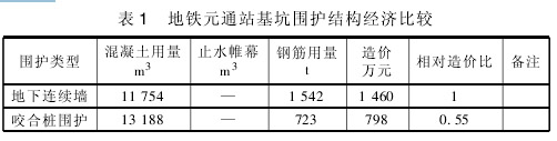根据车站主要参数和定额的相关单价将两种围护结构的经济指标计算结果示于表 1,表 1 仅仅是围护结构自身的造价,不包括基坑开挖、土方外运及回填、支撑架设、环境保护及施工监测等费用。