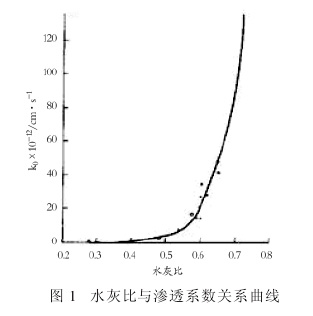 水灰比越大,则空隙率越大,渗透系数也随之增大(图1)。