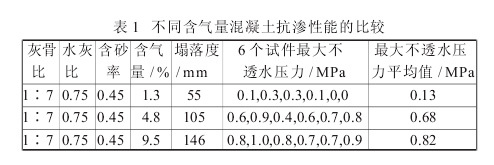 随着混凝土养护龄期的增加,水泥浆水化作用逐渐完全,水化产物(凝胶体)填充毛细孔,降低了混凝土的透水性(表 1)。